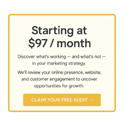 During the audit, we’ll review your website performance, SEO, content, and overall digital presence to uncover opportunities for growth. I’ll then create a personalized roadmap that shows you where to focus — whether that’s improving visibility, strengthening customer relationships, or standing out in a crowded market.